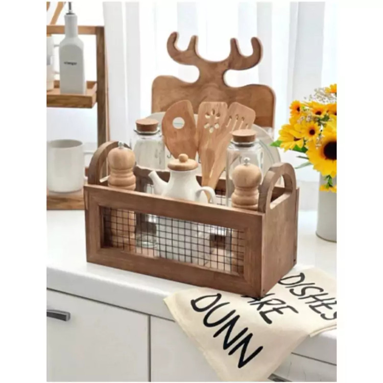 باکس چوبی دسته دار با توری فلزی باکس نظم دهنده چوبی دسته دار مدل توزی نظم دهنده آشپزخانه نظم دهنده چوبی توری