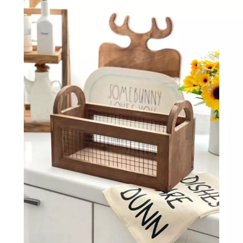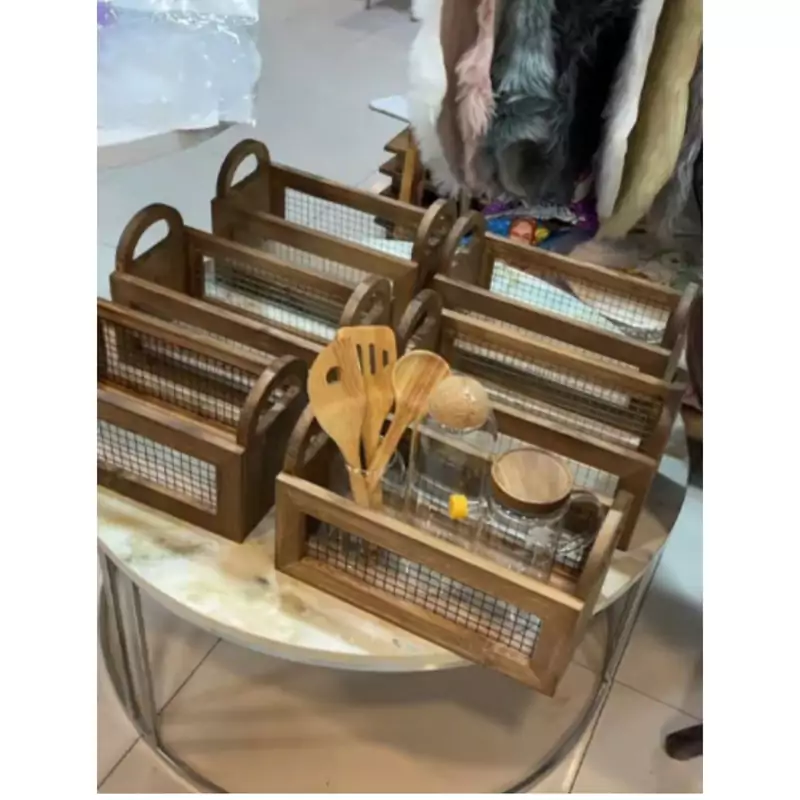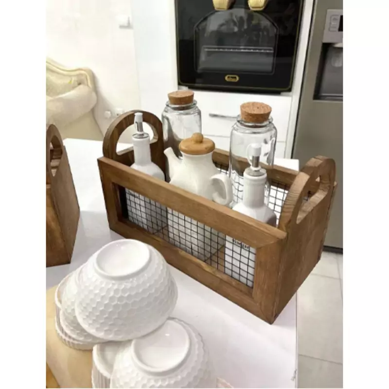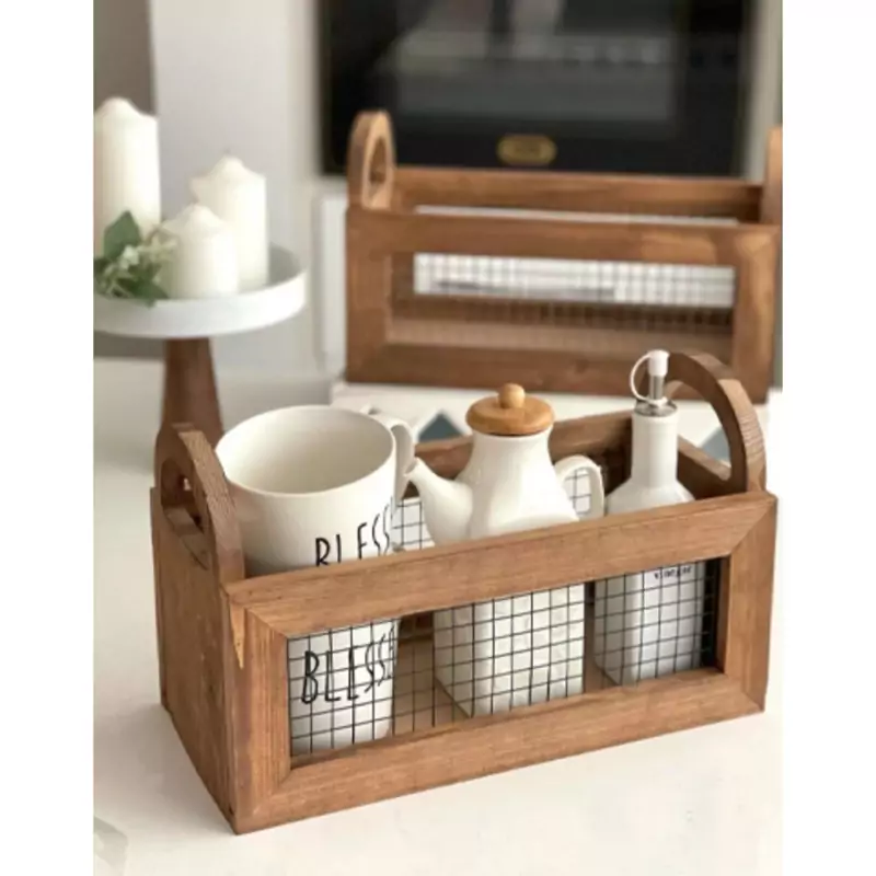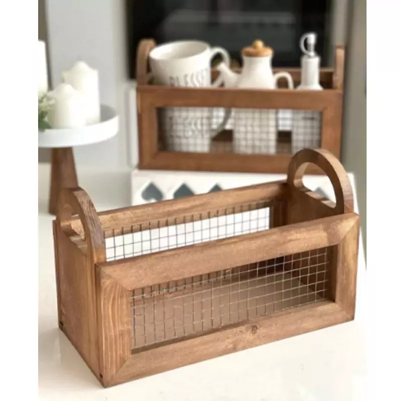 باکس چوبی دسته دار با توری فلزی باکس نظم دهنده چوبی دسته دار مدل توزی نظم دهنده آشپزخانه نظم دهنده چوبی توری