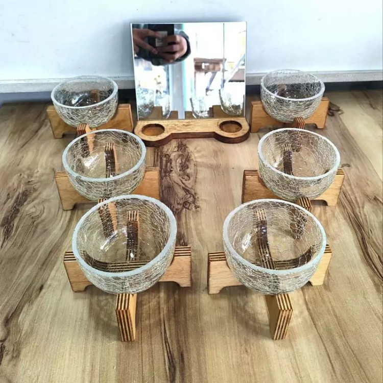 هفت سین آبگز پایه چوبی هفت سین شیشه ترک