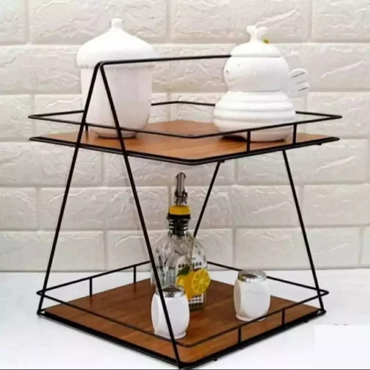 استند دو طبقه فلزی آشپزخانه کف چوبی استند مستطیل دوطبقه آشپزخانه