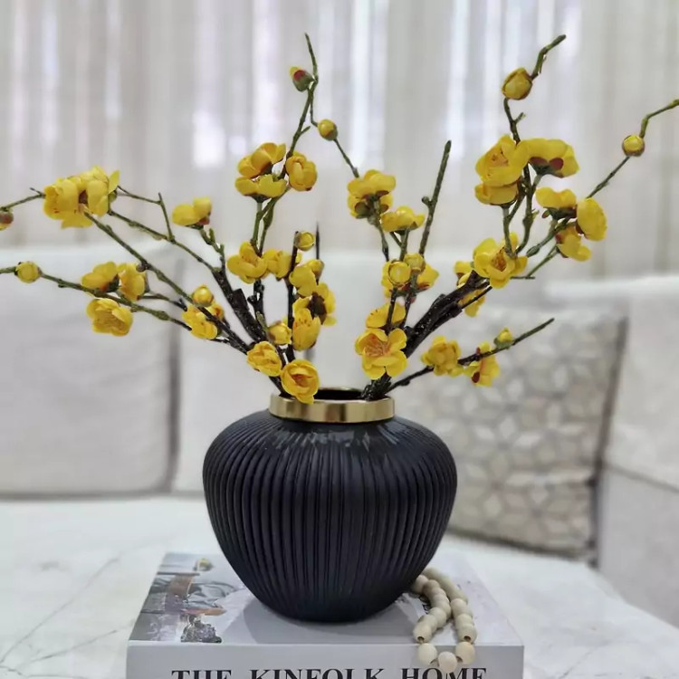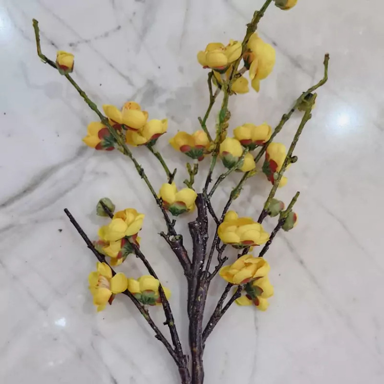 گل مصنوعی شاخه شکوفه ژاپنی چرمی وارداتی رنگ زرد