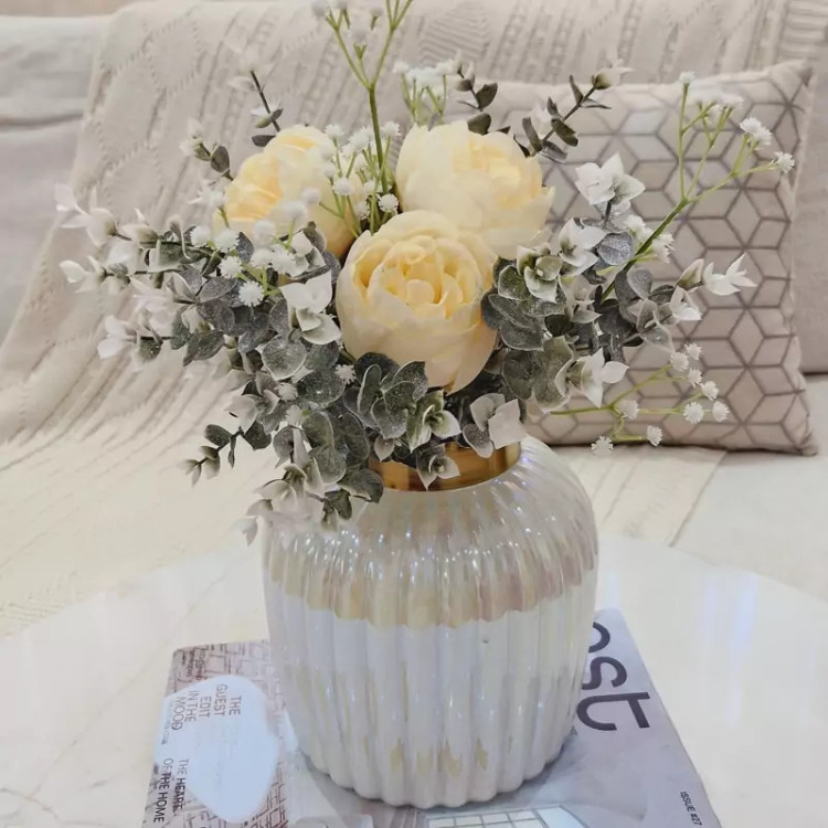 گلدان شیشه ای مدل خطی رنگ سفید