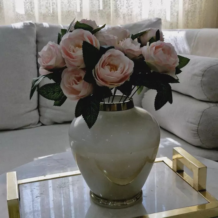 گلدان شیشه ای مدل پرنیا براق رنگ سفیدو دودی