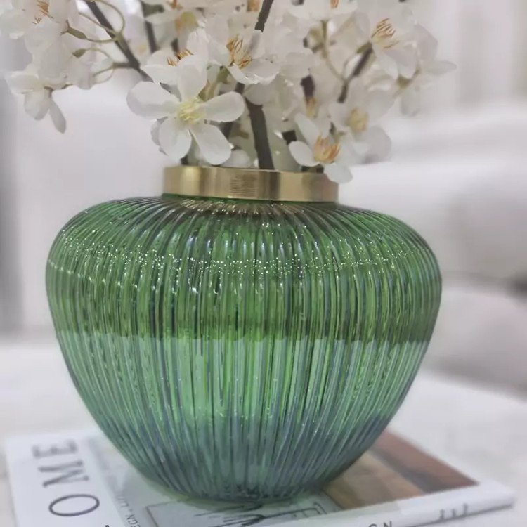 گلدان شیشه ای رنگ سبز آبکاری فورتیک