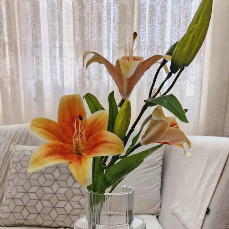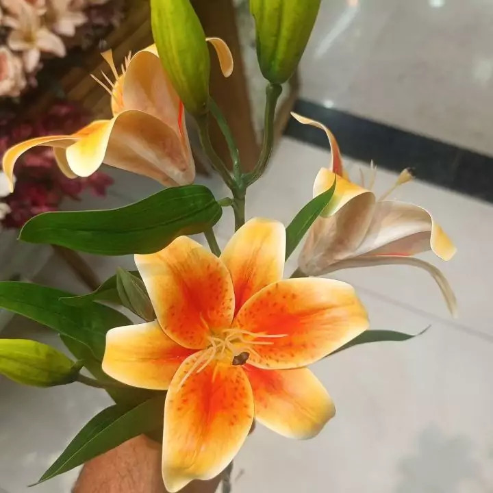 گل مصنوعی شاخه ی لیلیوم لمسی یعنی با طبیعی مو نمیزنه کار خییلی باکیفیت و درجه یک
