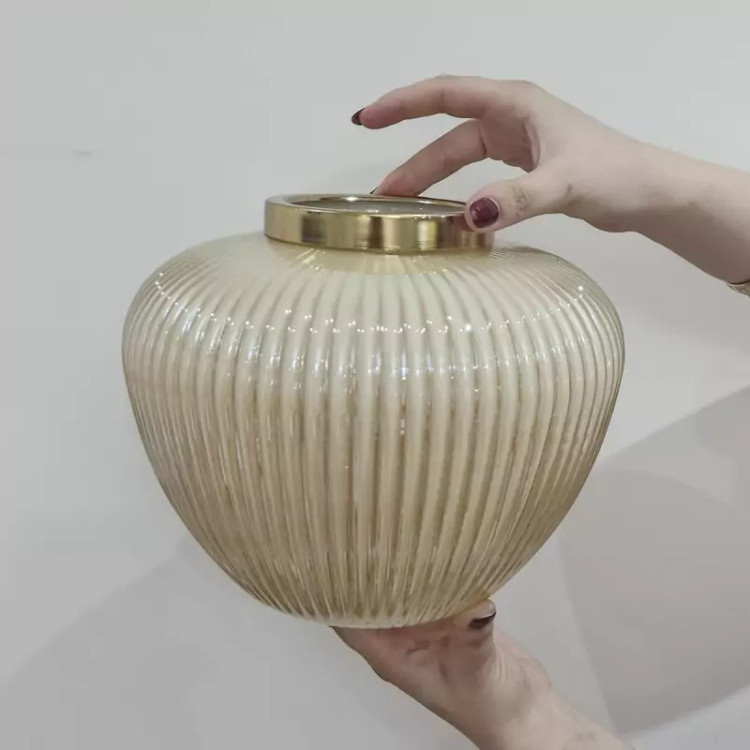 گلدان شیشه ای رنگی مدل روژان بزرگ رنگ کرمی