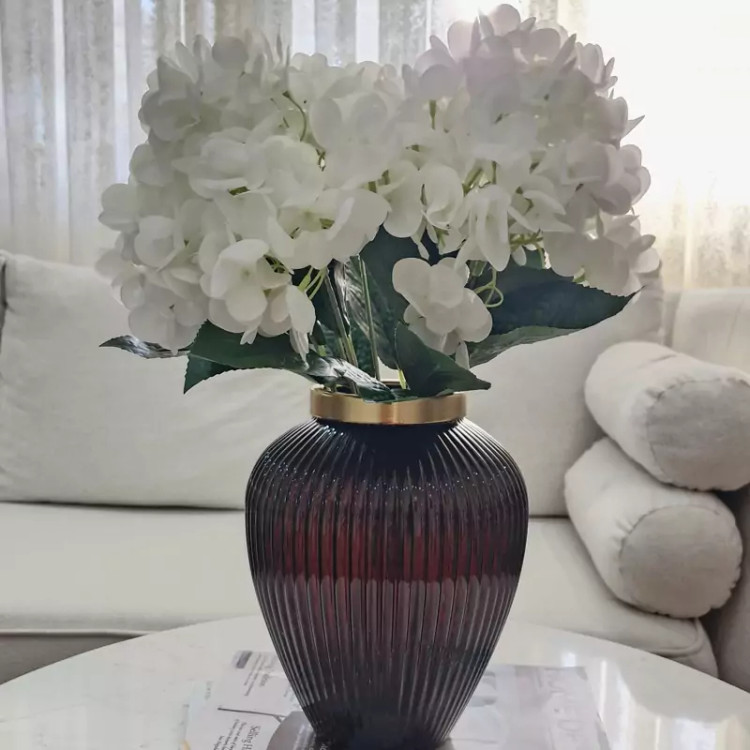 بوته گل مصنوعی هورتانزیا شدیدا با کیفیت جنس پارچه ای لمسی کاملا پرحجم یه بوته 5 شاخه پرحجم داره و قابل شستشو هستش
