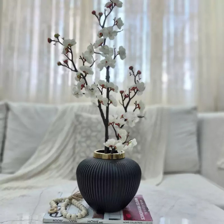 گلدان بدنه مشکی مات خیلی شیکه برای خونه های مدرن.دهانه گلدان آبکاری فورتیک هستش