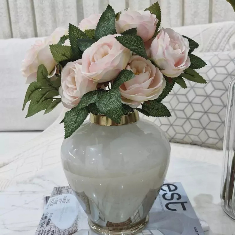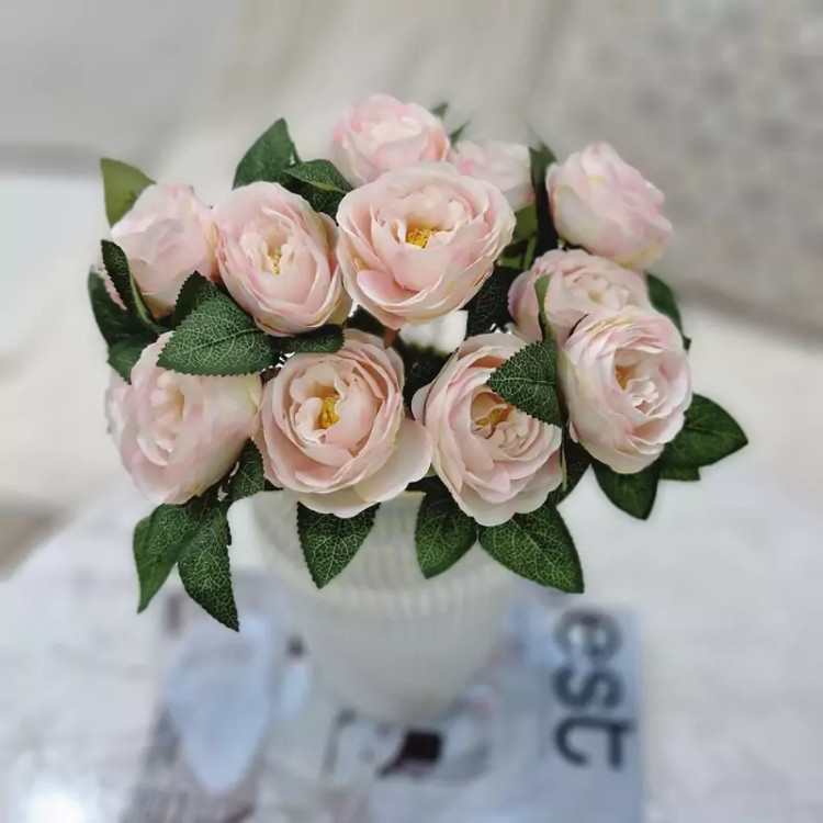 گل مصنوعی رز پیونی یه بوته 7 گل متوسط داره