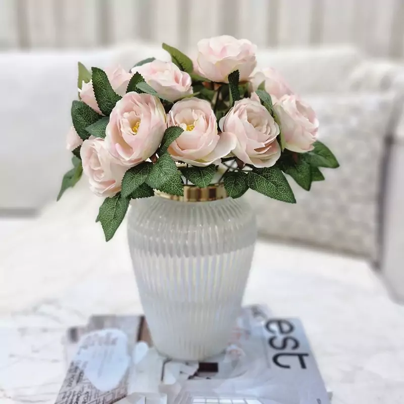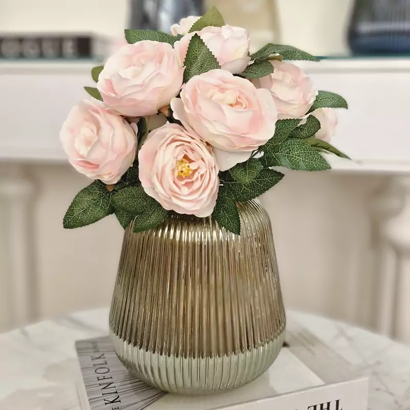 گل مصنوعی رز پیونی یه بوته 7 گل متوسط داره