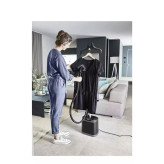 رنگ بدنه ی این اتو بخار ایستاده مشکی است. که رنگی بسیار زیبا و شیک و جذاب است و به آسانی با هر دکوراسیونی هم خوانی پیدا می کند. این محصول دارای یک عدد آویز می باشد که می توانید لباس را روی آن آویز آویزان کنید و به اتو کردن به صورت عمودی بپردازید که هم بسیار آسان است و هم سرعت اتو را تا حد بسیار زیادی بالا می برد. در کفه ی این اتو فلز چدن وجود دارد که موجب بالاتر رفتن کیفیت اتو می شود.