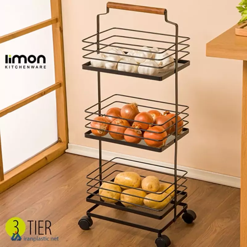 جا سیب زمینی وپیاز فلزی 3 طبقه دسته چوبی