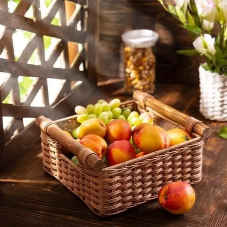 سبد بافت محیا دسته چوبی