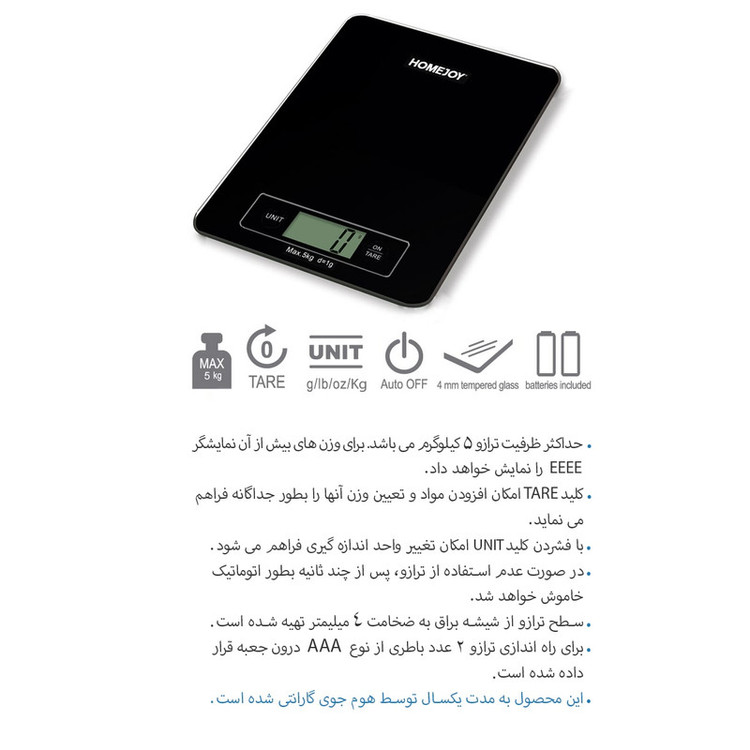 حداکثر ظرفیت قابل اندازهگیری: 5 کیلوگرم
