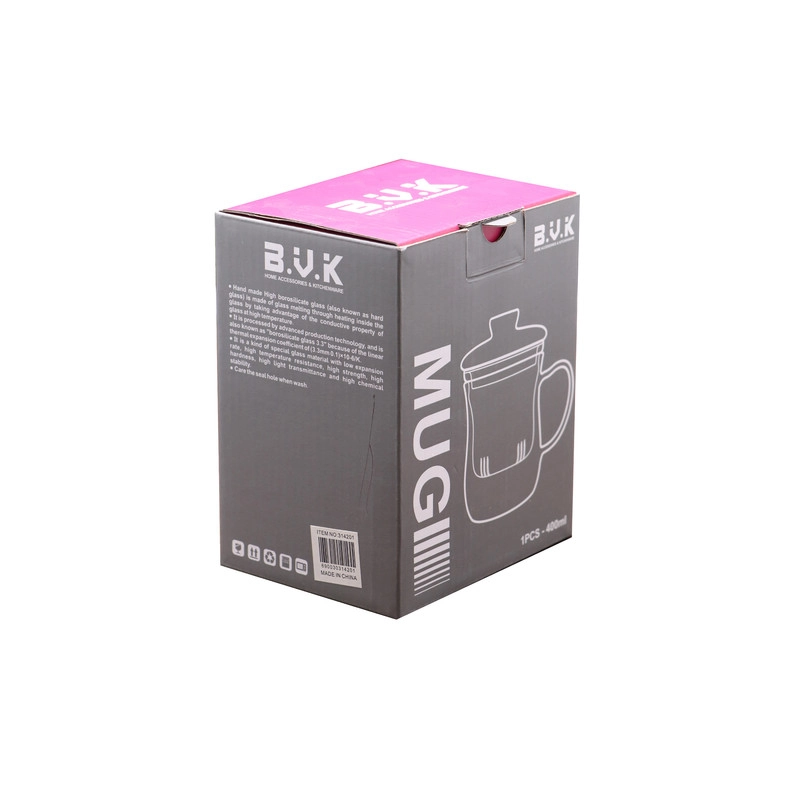 دمنوش تمام پیرکس 400میل قابلیت حفظ دما قابل استفاده در اجاق های مایکروویو است. قابل شستشو در ماشین ظرفشویی قبل از استفاده اول محصول را بشویید. طراح برند بی.وی.کی بدون اضافه کردن کادمیوم یا سرب. بسیار زیبا و با دوام