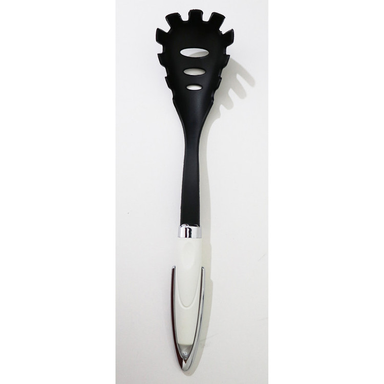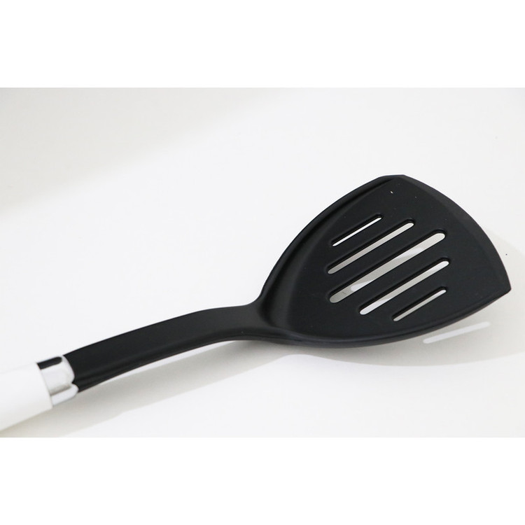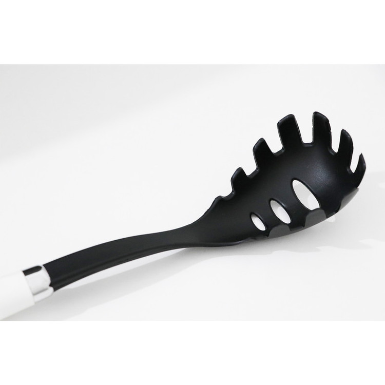 بسیار با کیفیت جنس درجه یک عالی با سری تفلون - مناسب برای ظروف تفلون جهت جلوگیری از خط و خش - تحمل گرما تا دمای 210 درجه سانتیگراد - دارای حلقه آویز در انتهای دسته - قابل شستشو در ماشین ظرفشویی