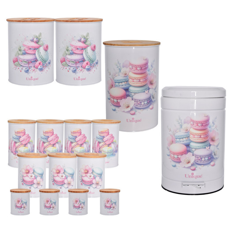 3 عدد پاسماوری، 4 عدد جای ادویه، 4 عدد ظرف حبوبات، 1 عدد سطل زباله، 1 عدد سطل برنج، 1 عدد جای قند، 1 عدد جای شکر