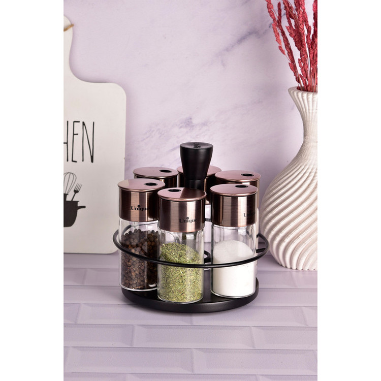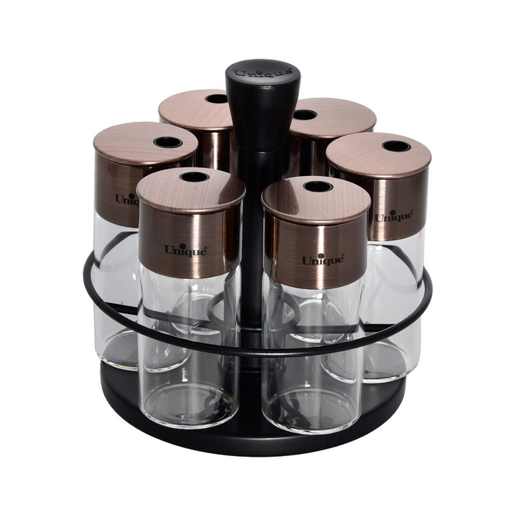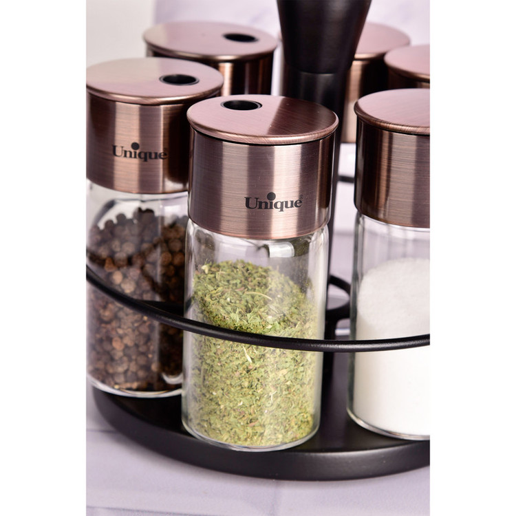 ست جا ادویه یونیک کد 1642 دارای 6 ادویه و یک استند می باشد.این ست به نسبت سرویس های مشابه مناسب است و از کیفیت بالایی برخوردار است. استفاده از ادویه در آشپزی ایرانی از جایگاه ویژه ای برخوردار است. از آنجا که ظروف ادویه به دلیل پرکاربرد بودن در خارج از کابینت و در کنار دست آشپز قرار میگیرند، زیبایی ظاهری و کیفیت آنها از اهمیت بالایی برخوردار است.