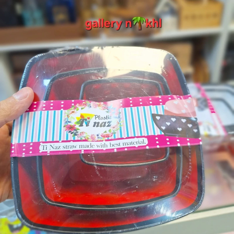 کاسه های سه سایزی خال دار و دورنگ از جنس پلاستیک
