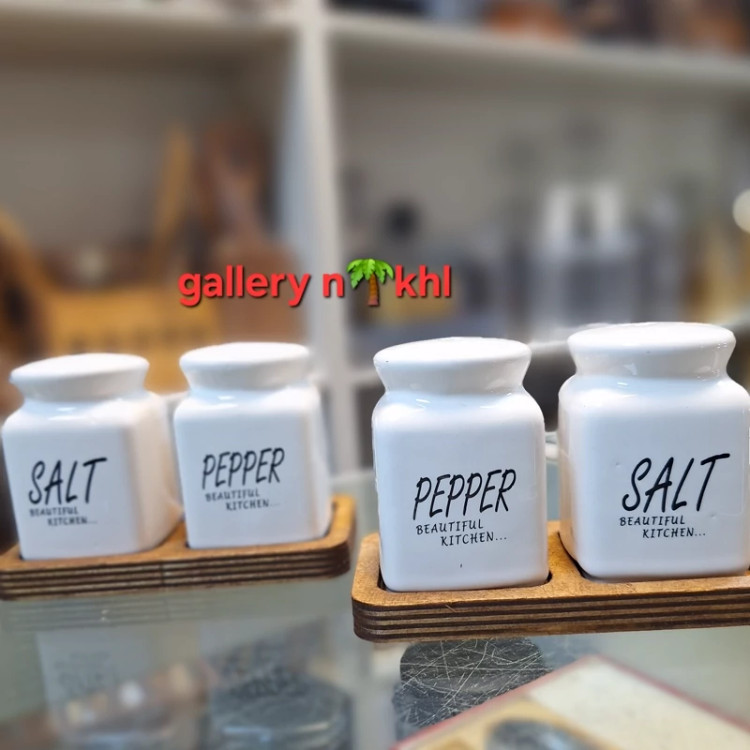 ست نمکدان فلفل سرامیکی به همراه استند چوبی