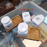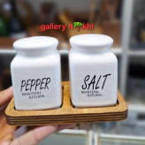 ست نمکدان فلفل سرامیکی به همراه استند چوبی