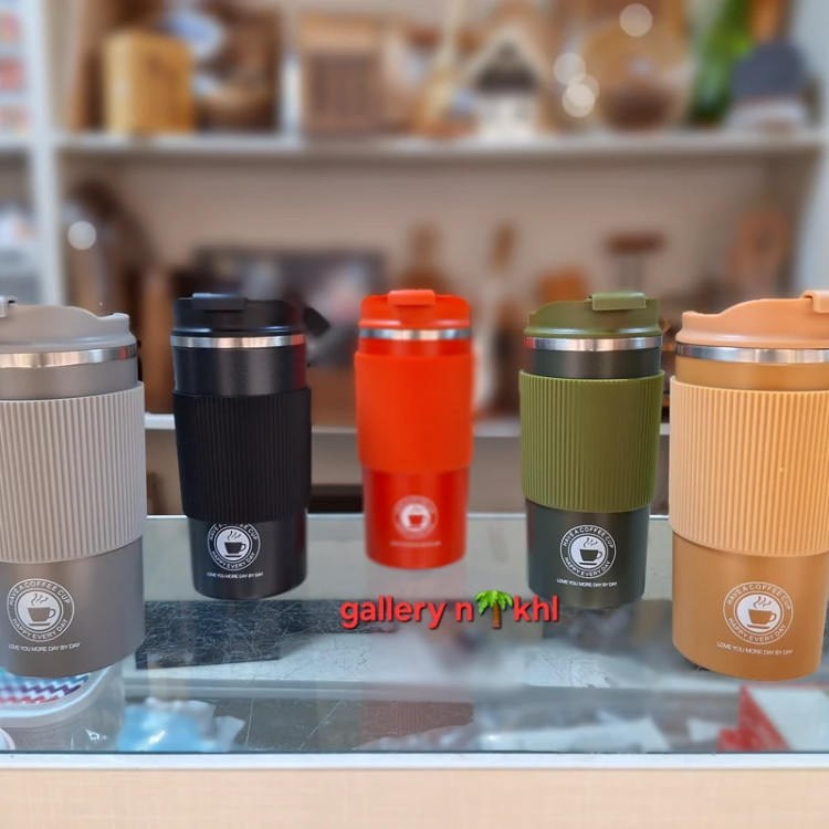 تراول ماگ دور سیلیکونی 500 میلی لیتر برند کافی با جنس استیل 304