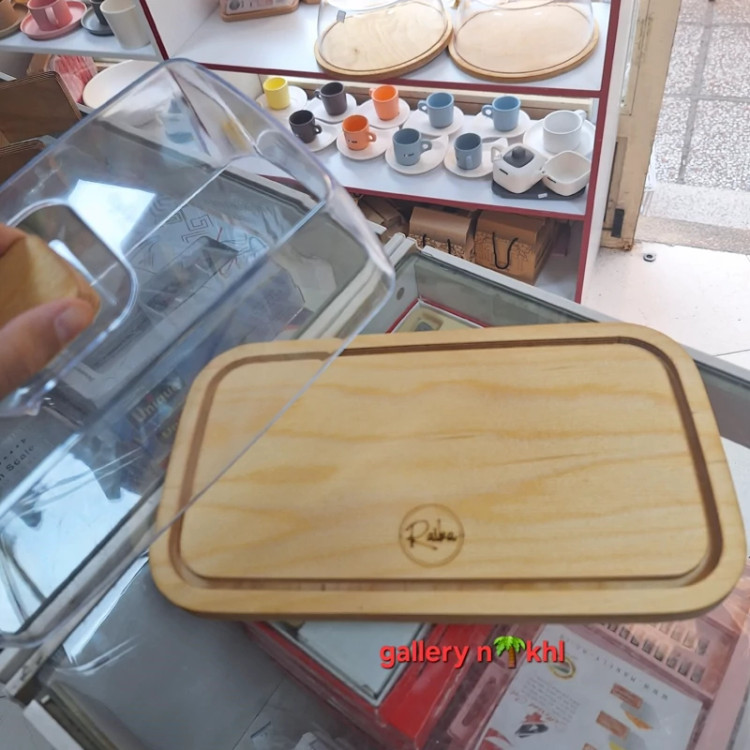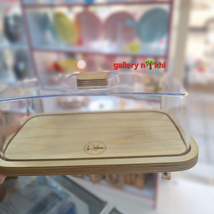 کاپ کیک پایه چوبی مستطیل به همراه درب طلقی و با طول و عرض 30 و 17 سانت