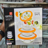 ظرف ماکروفری شیشه ای سه سایزی کاپریس به همراه درب محکم ژله ای می باشد.