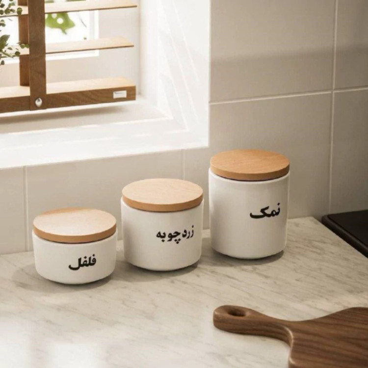 بانکه سه تایی ادویه به همراه درب چوبی و ابعاد متفاوت