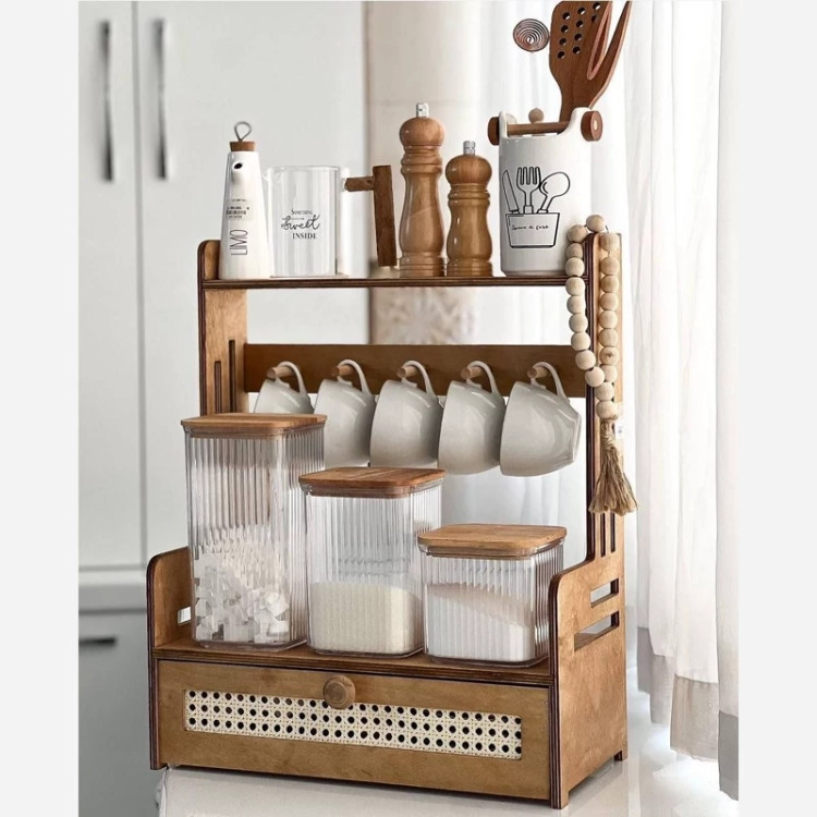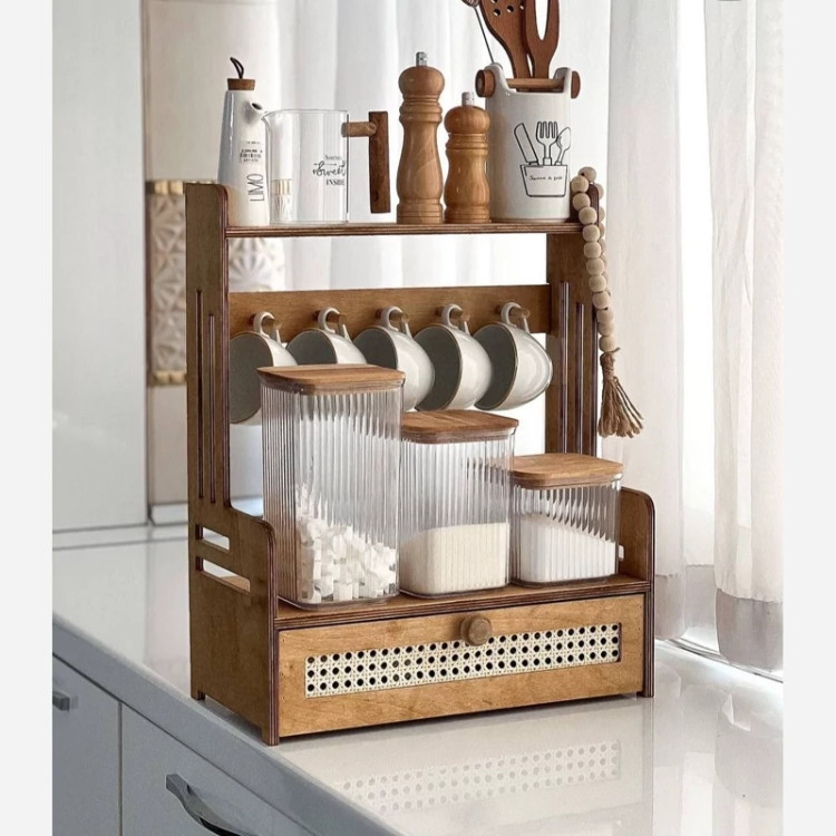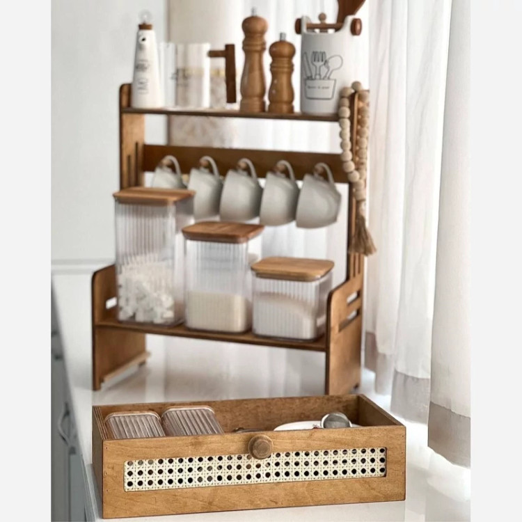 استند اطلس کشو حصیری آویز دار چوبی