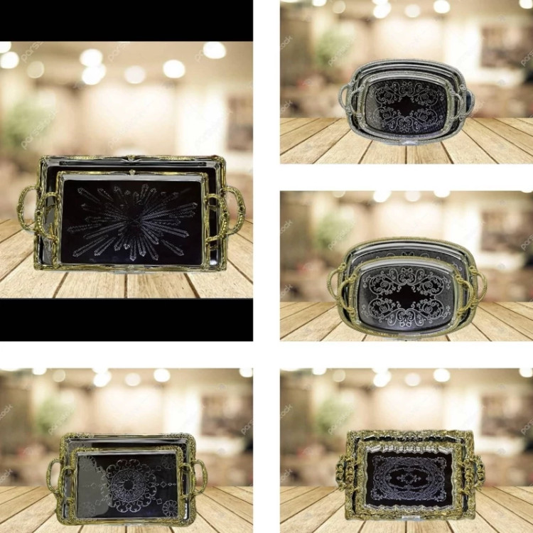 سینی های جفتی کیفیت عالی در 7 مدل زیبا ، دارای رنگبندی طلایی و نقره ای