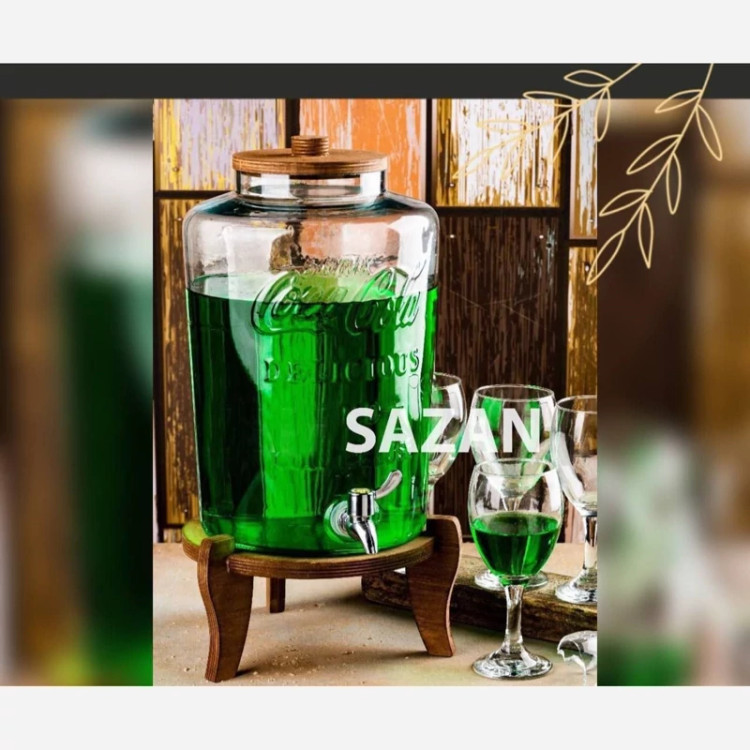 کلمن شیشه ای پایه چوبی کوکاکولا