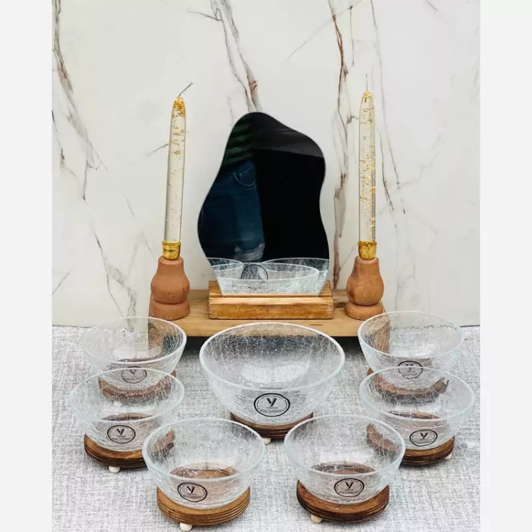 ✅️شامل: آینه ، شمعدان (2عدد)، پیاله (6عددبازیره) ،تنگ ماهی(بازیره)