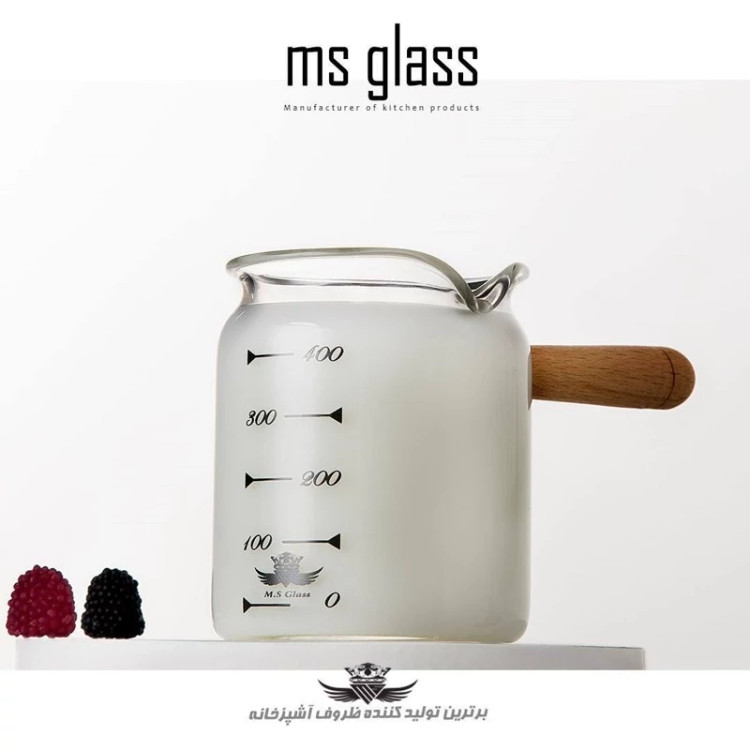 شیر جوش استوانه دسته چوبی پیرکس حرارت مستقیم کیفیت عالی