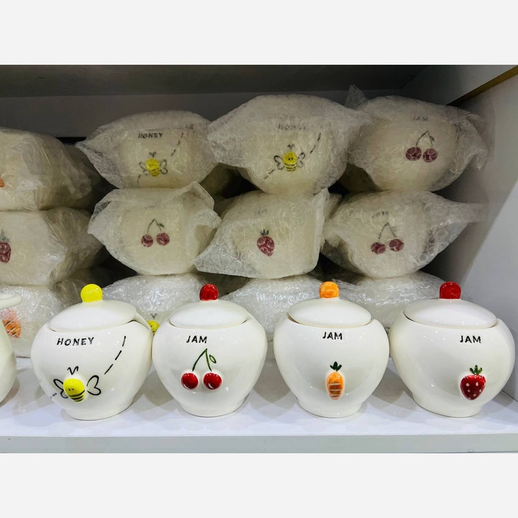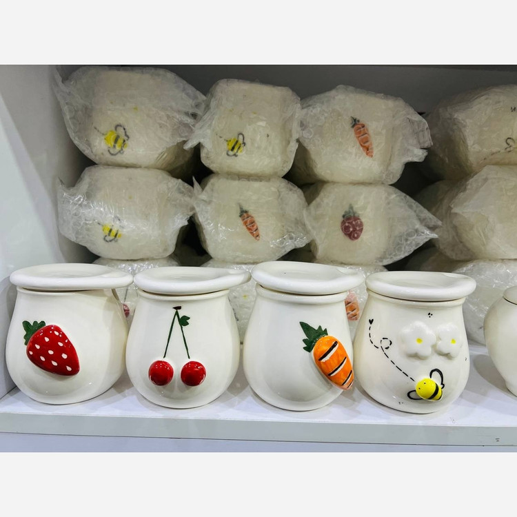 ظروف مربا و عسل سرامیکی برجسته دو مدل استوانه ای و تپل کیفیت عالی