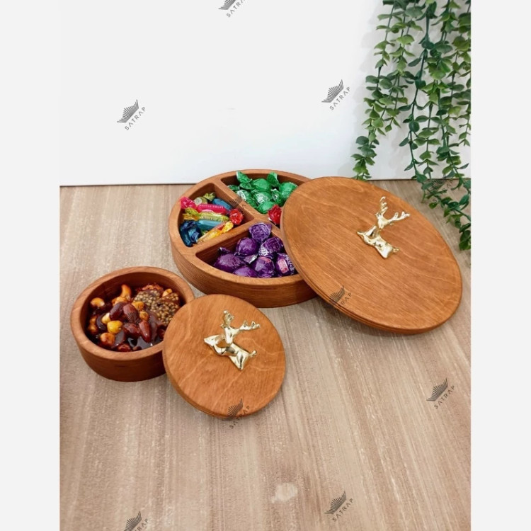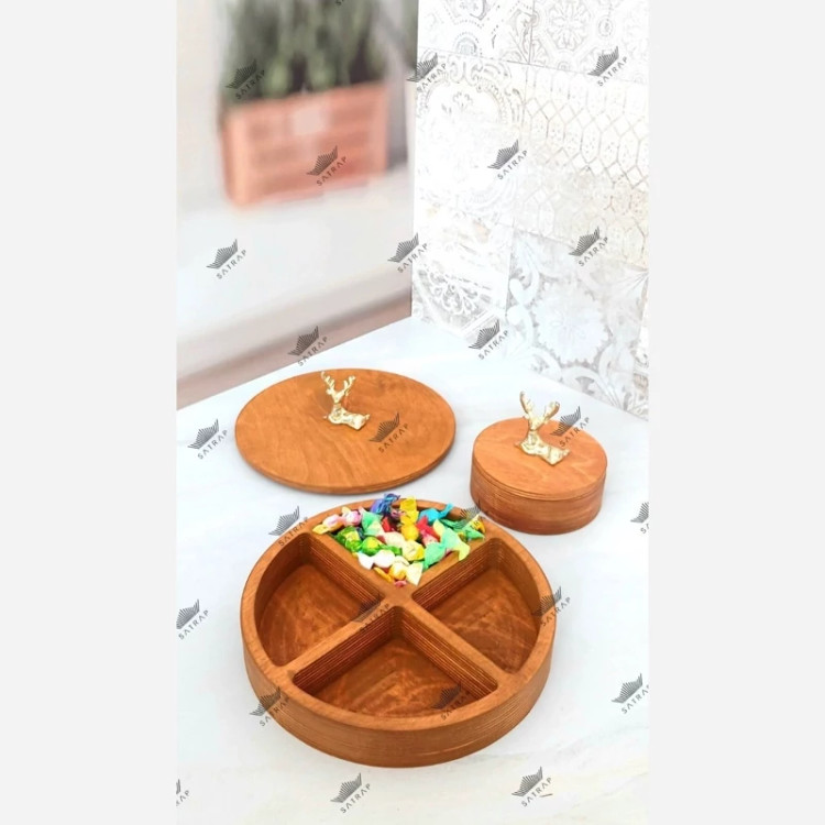 شکلاتخوری/تیبگ 4خانه گرد+قندان چوبی گوزن