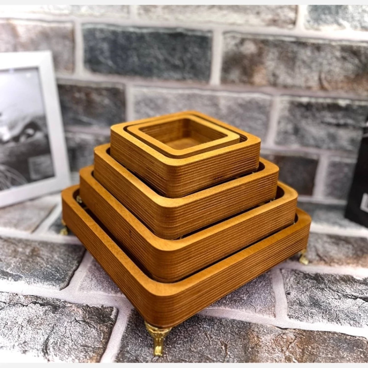 کاسه چوبی 5 تیکه پایه دار ، ست چوبی پذیرایی 5 تیکه گرد و مربع