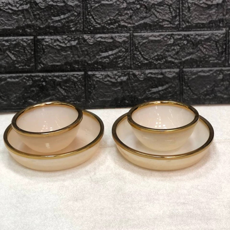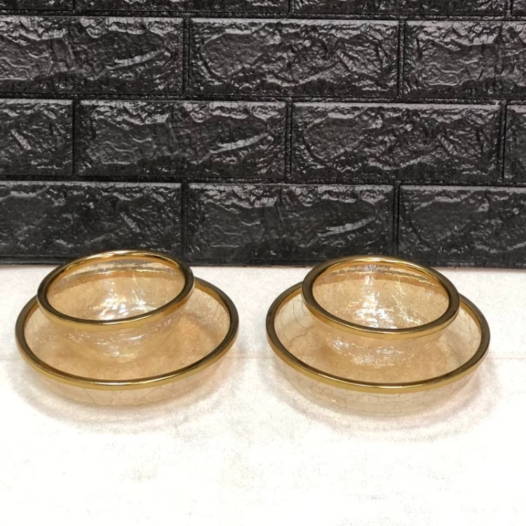 پیاله و یا بشقاب کاراملی طلایی و آبگز
