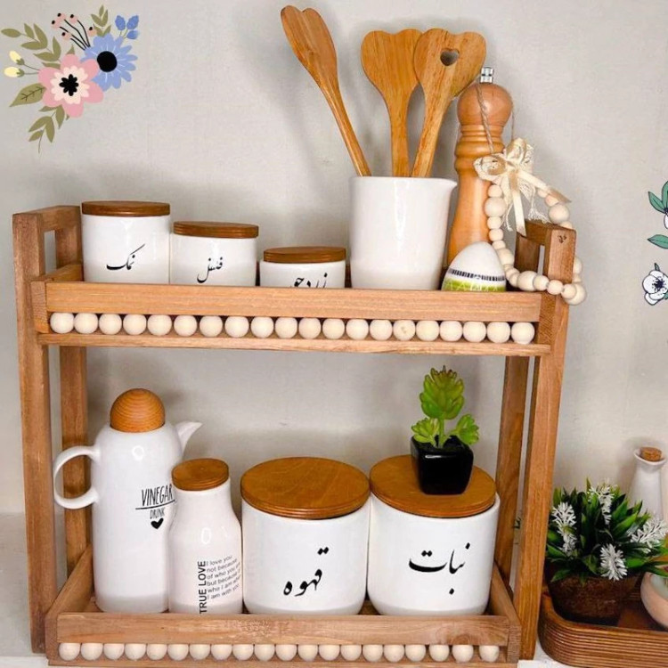 استند دو طبقه چوبی مهره دار جدید و شیک مناسب برای سرو و دکور و پذیرایی و ..