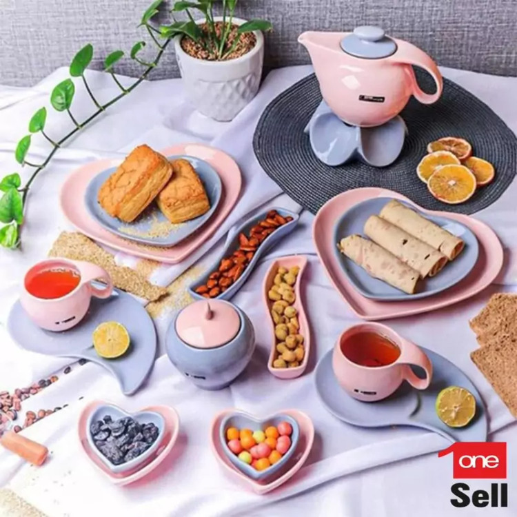 ست صبحانه خوری سرامیکی mv وارداتی ترک شامل قوری و استند قوری ، سوفله خوری ، زیتون خوری ، مربا خوری ، استکان ، چایی قاشق ،نمک پاچ، قندان ، بشقاب طرح قلب، پیش دستی طرح قلب و ...