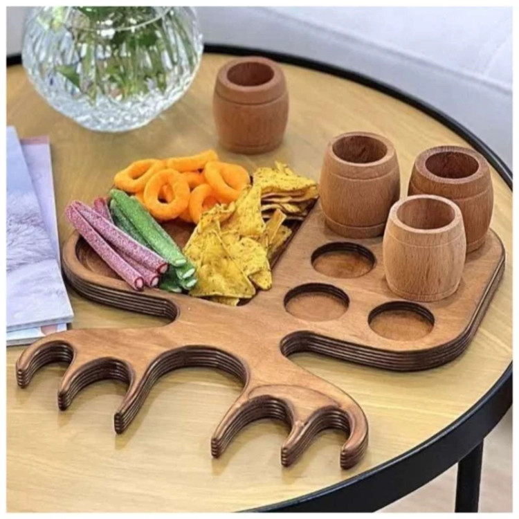 تخته سرو چوبی مزه خوری با قابلیت جای شات طرح گوزن قابل شست و شو بسیار شیک و جذاب