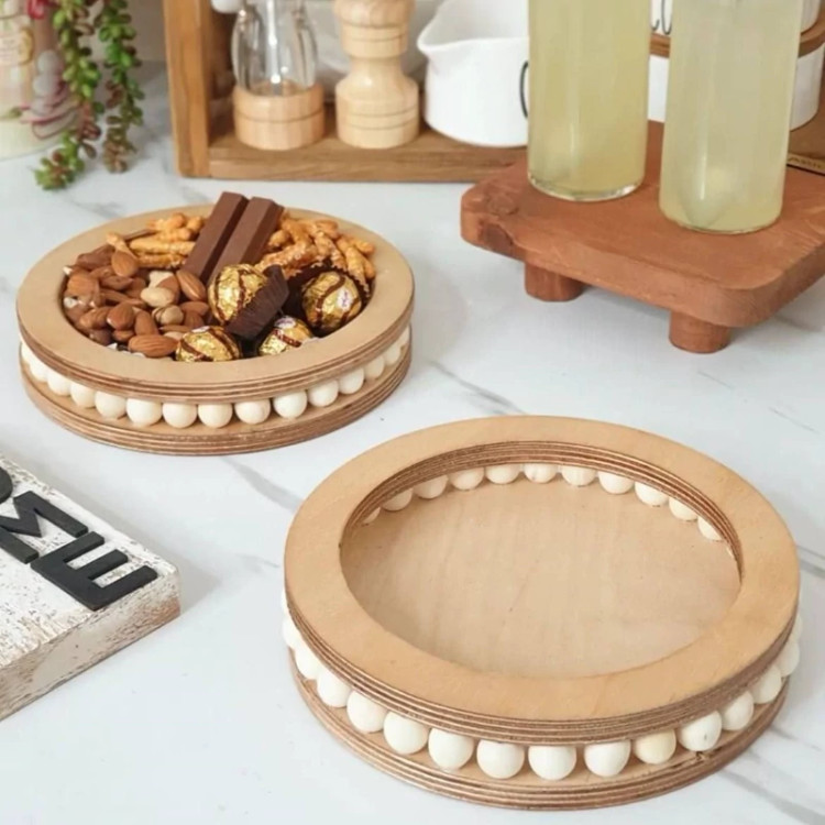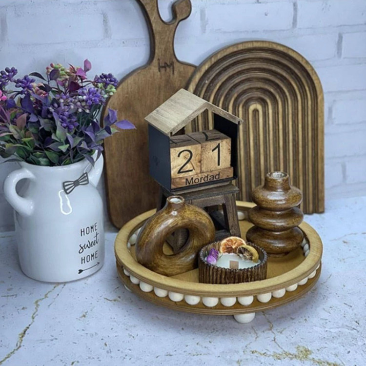 سینی گرد مهره دار چوبی در 3 سایز مختلف