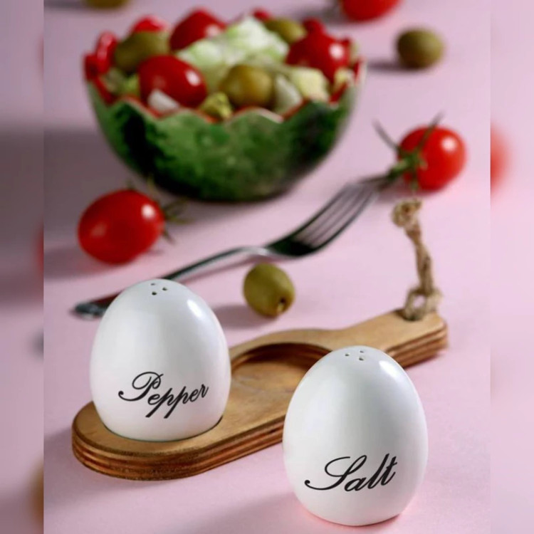 جای نمک و فلفل ست زیر چوبی طرح مربع و تخم مرغی سرامیکی رایان با بهترین کیفیت