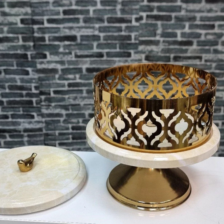 شکلات خوری استیل طلایی پایه دار