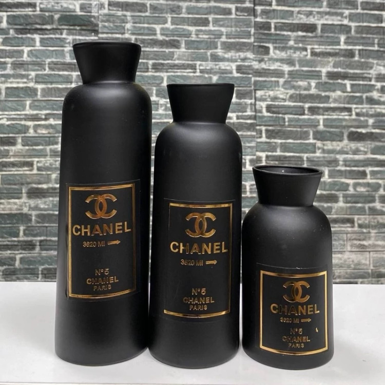 گلدان 3 تکه چنل مشکی تپل و یا دراز