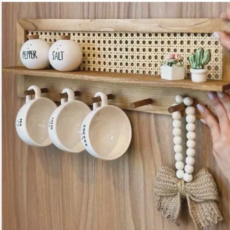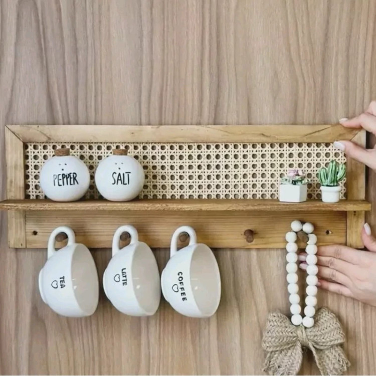 شلف دیواری چوبی اصل کیفیت عالی حصیری طرح جدید