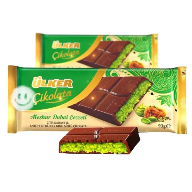 شکلات دبی اولکر 93 گرم با طعم پسته و کنافه وارداتی از مرز بازرگان