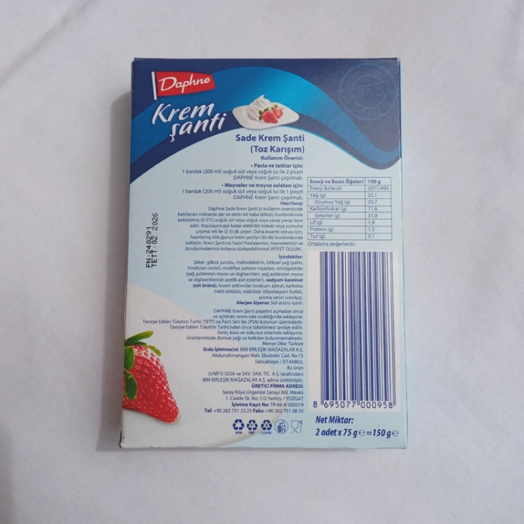 پودر کرم شانتی ساده ( خامه قنادی ) 150 گرم دو بسته ی 75 گرمی دافنه (Daphne) ترکیه