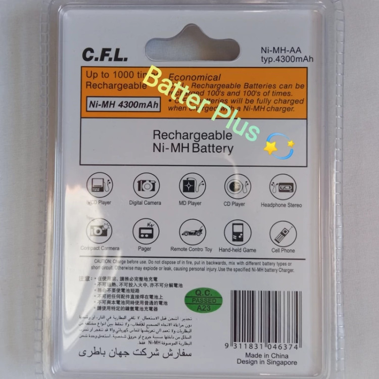 باتری شارژی قلمی CFL نیکل متال هیدرید ظرفیت 4300mAh