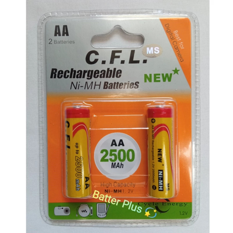 باتری شارژی قلمی دوتایی C.F.L از تکنولوژی نیکل متال هیدرید فلز در ساخت آن استفاده شده است. که امکان شارژ شدن مجدد باتری را فراهم میکند و شما را از دردسرهای تهیه باتری جدید نجات میدهد.